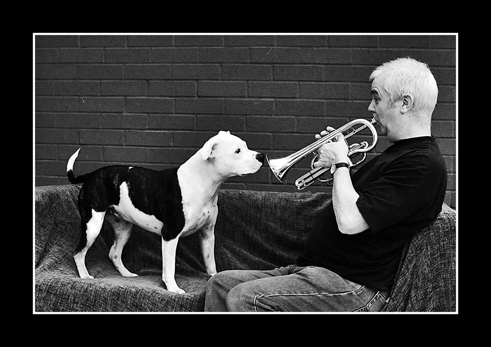 Les is also an accomplished brass musician – Skye the staffy likes to hear him play.